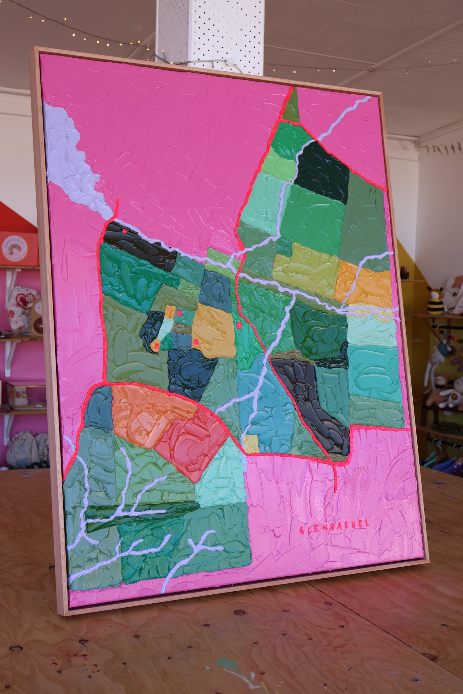 Custom farm maps are layered with colour and texture, capturing your land in a fun and bright heirloom piece!