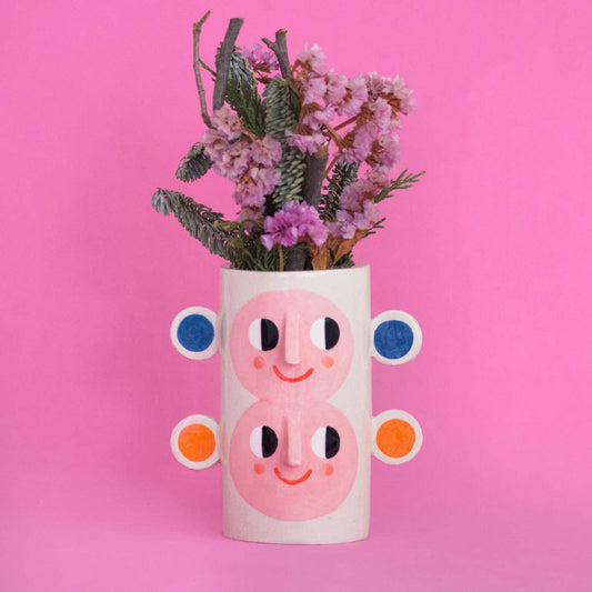 Double Face with Orange & Blue Ears / Ceramic Vase
