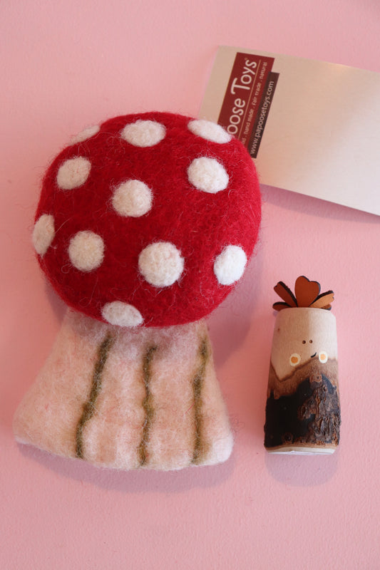 Sold outRed white spot wood + felt mushroom