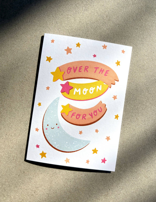 Over the Moon Card - Congratulations Good News Celebration