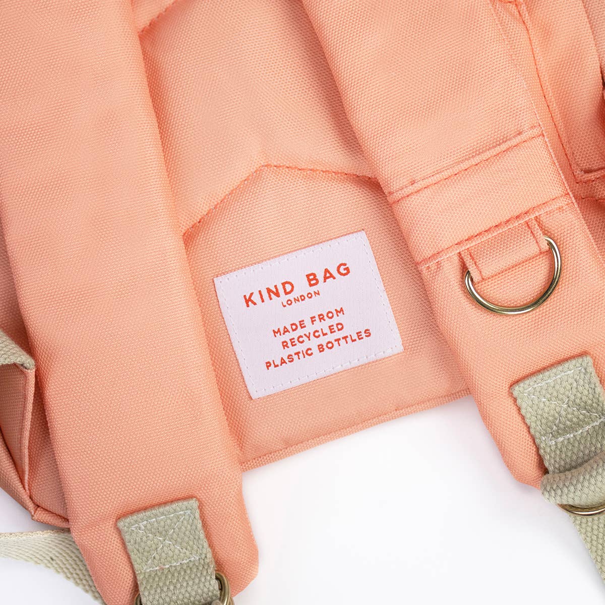 Mini backpack made from recycled materials. Peach. *This mini backpack will carry your essentials in a stylish way while fighting plastic pollution. *100% recycled - from the inner and outer fabric to the lining, zippers and hooks! *Built-in expandable top and plenty of pockets means this mini backpack has a surprising capacity of up to 10L!